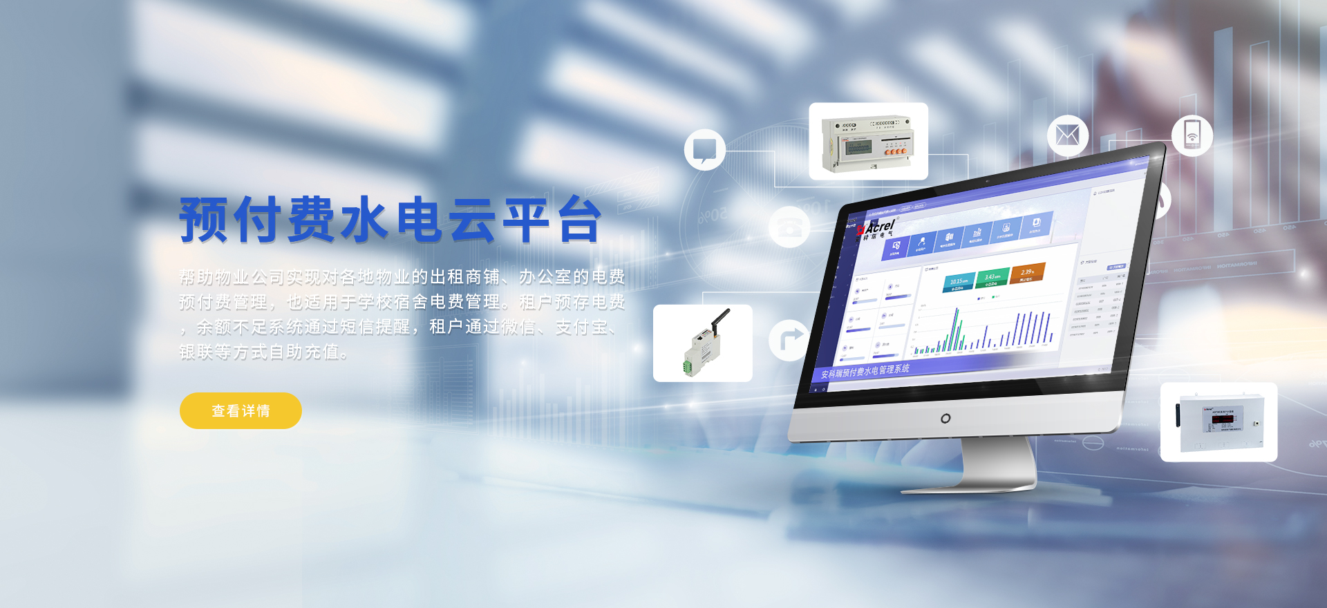 安科瑞提供的解決方案包括Acrel-EIoT能源物聯(lián)網(wǎng)云平臺變電所運維云平臺安全用電管理云平臺環(huán)保用電監(jiān)管云平臺智慧消防云平臺能源管理云平臺、工業(yè)企業(yè)能源管控平臺、遠程預付費云平臺餐飲油煙監(jiān)管云平臺電動汽車/電瓶車充電樁收費管理云平臺、電力監(jiān)控/無線測溫系統(tǒng)、電能質(zhì)量治理系統(tǒng)、電氣火災監(jiān)控系統(tǒng)消防設備電源監(jiān)控系統(tǒng)防火門監(jiān)控系統(tǒng)應急照明和疏散指示系統(tǒng)、智能照明控制系統(tǒng)、醫(yī)用隔離電源絕緣監(jiān)測系統(tǒng)等,幫助用戶實現(xiàn)能源智能化、可視化、精細化管理,提高用能效率和用能安全,為企業(yè)節(jié)能降耗和實現(xiàn)能源數(shù)字化建設提供數(shù)據(jù)服務。